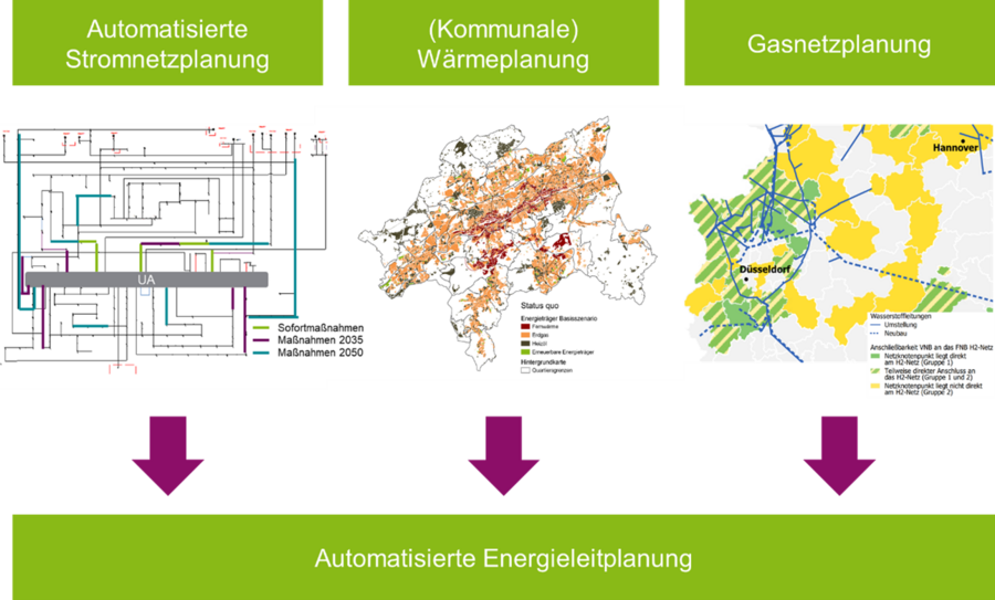 Das Projekt Automatisierte Energieleitplanung hat das Ziel die kommunale Wärmeplanung um zwei wesentliche Aspekte zu erweitern. Erstens die Integration der Netzauswirkungen aller leitungsgebundenen Energieversorgungsinfrastrukturen (Strom-, Gas- und Wärmenetze) in die kommunale Wärmeplanung und zweitens die Automatisierung des Planungsprozesses, um den rollierend benötigten Aufwand unter Berücksichtigung der Sektorenkopplung zu minimieren.