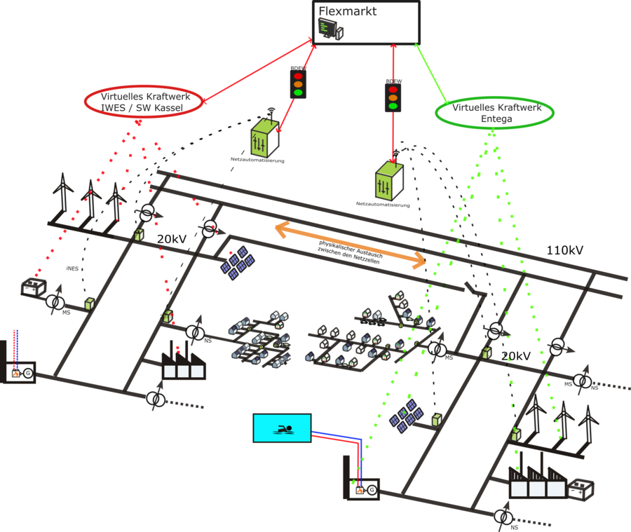 Aufgrund des Wandels der deutschen Energieversorgung hin zu einer regenerativen Erzeugung und der damit verbundenen dezentralen Einspeisung, stehen die Verteilungsnetzbetreiber vor neuen Herausforderungen. Durch das volatile Energieangebot und dem gleichzeitigen Anstieg von leistungsintensiven Verbrauchern im Mittel- und Niederspannungsnetz unterscheiden sich die Belastungsverhältnisse heute schon erheblich von der klassischen zentralen Erzeugungssituation. Immer mehr dezentrale Anlagen werden zu virtuellen Kraftwerken für einen optimierten Einsatz zusammengeschlossen. Dabei liegt der Fokus der VK-Betreiber auf der wirtschaftlichen Optimierung des Erzeugerparks ohne Berücksichtigung der Netzsituation. Um örtlichen Überlastsituationen ohne einen aufwendigen Netzausbau begegnen zu können, müssen die Verteilungsnetze mit „Intelligenz“ ausgestattet und somit zu Smart-Grids ausgebaut werden.
