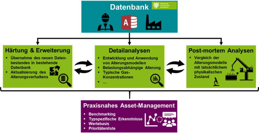 Ziel des Projekts ist es, durch die Sammlung von Daten, insbesondere durch Wiederholungsmessungen im Vergleich zum Vorgängerprojekt AHtra, und die Durchführung mehrerer post-Mortem-Analysen, zu einem besseren Verständnis des Alterungsverhaltens von Leistungstransformatoren und deren Komponenten beizutragen. Unter einer post-mortem-Analyse wird die Untersuchung des Transformators, insbesondere des Aktivteils, vor der Verschrottung verstanden. Bereits ermittelte Alterungskurven aus AHtra werden in diesem Zusammenhang überprüft und verifiziert. Mit der Aufnahme weiterer Projektpartner, vor allem Kraftwerks- und Industrieunternehmen, sollen die Auswirkungen unterschiedlicher Belastungen auf Transformatoren untersucht werden. Die Temperatur ist einer der größten Alterungsförderer und wird maßgeblich durch die Belastung beeinflusst. Darüber hinaus ist davon auszugehen, dass sich die EVU-Last durch die Energiewende in Richtung längerer und höherer Belastungen mit weniger Abkühlphasen verändern wird. Aus diesem Grund ist es sinnvoll, den Einfluss der Temperatur auf das Alterungsverhalten zu bestätigen und wenn möglich zu quantifizieren. Die Ergebnisse aller Analysen helfen dem Asset-Management Entscheidungen über Erneuerungs- und Instandhaltungsstrategien zu optimieren. Auf dieser Grundlage sollen Entscheidungen für das Asset-Management vereinfacht werden. Darüber hinaus werden die Transformatoren durch die Fortführung des Projekts weiter altern und weitere Zustandshinweise für das interessante Alter ab 40 Jahren liefern.